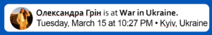 Oleksandra is an illustrator who lives in Lviv, Ukraine, in the western part of the country near the border of Poland. At the start of the Invasion, her posts changed from lighthearted illustrations to powerful messages and sketches that express her anger and fear, determination and clarity about the Russian invasion of her homeland. I had hoped to include her art in the spring issue, but didn’t hear back from her in time. Here is that post and issue.